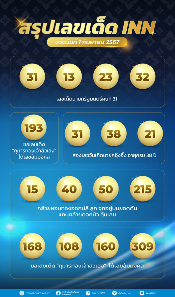 รวมเลขเด็ด เลขมาแรงทั่วไทยงวดวันที่ 1 กันยายน 2567