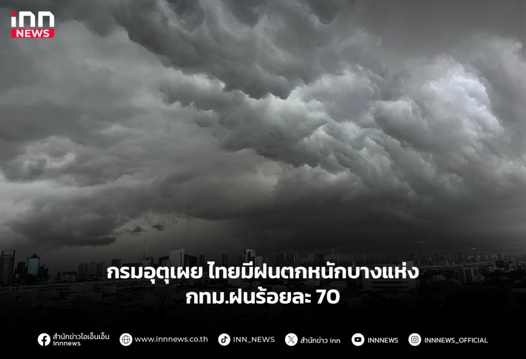 กรมอุตุเผย ไทยมีฝนตกหนักบางแห่ง กทม.ฝนร้อยละ 70