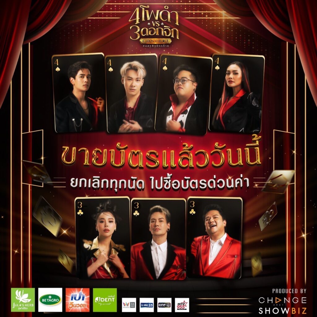 นับเป็นปรากฏการณ์กระหึ่มโลกโซเชียลทีเดียว !! กับการรวบรวม 7 สุดยอดศิลปินมาไว้ในคอนเสิร์ตที่เจอ จ่าย จบ !! (เจอกันที่คอนเสิร์ต จ่ายด้วยความฮา จบทุกความเครียด) กับคอนเสิร์ตที่แซ่บที่สุดแห่งปีใน “คอนเสิร์ต 4 โพดำ ปะทะ 3 ดอกจิก” #อสรพิษมิตรร้าย พร้อมจัดเต็มความสนุกสนานเต็มคาราเบล จาก 2 แก๊งที่แสบเสมอกัน ระหว่างแก๊งรุ่นพี่สุดเก๋าจากเดอะสตาร์ “4 โพดำ” กัน นภัทร , แก้ม วิชญาณี , โดม จารุวัฒน์ และ ตั้ม วราวุธ มาปะทะ แก๊งรุ่นน้องตัวตึงที่อยากเดบิวต์เป็น “3 ดอกจิก” อ๊อฟ ปองศักดิ์ , เบน ชลาทิศ และ ซานิ นิภาภรณ์ ที่พร้อมฟาดกันด้วยเสียงร้องทรงพลังกับเพลงที่ขนกันมาหมดคลังแสง และฝีปากที่ลับกันมาอย่างคมกริบสุดเผ็ดร้อน พร้อมกรี๊ดกับเพลงเพราะสุดประทับใจ ฮาน้ำตาเล็ดไปกับช่วงทอล์กสนุกกับโชว์สุดว๊าว !!! การันตีความประทับใจทั้งหมดจาก CHANGE Showbiz กับ Production ฉาก เวที แสง สี เสียง อลังการ แบบเต็ม 10 ไม่หัก