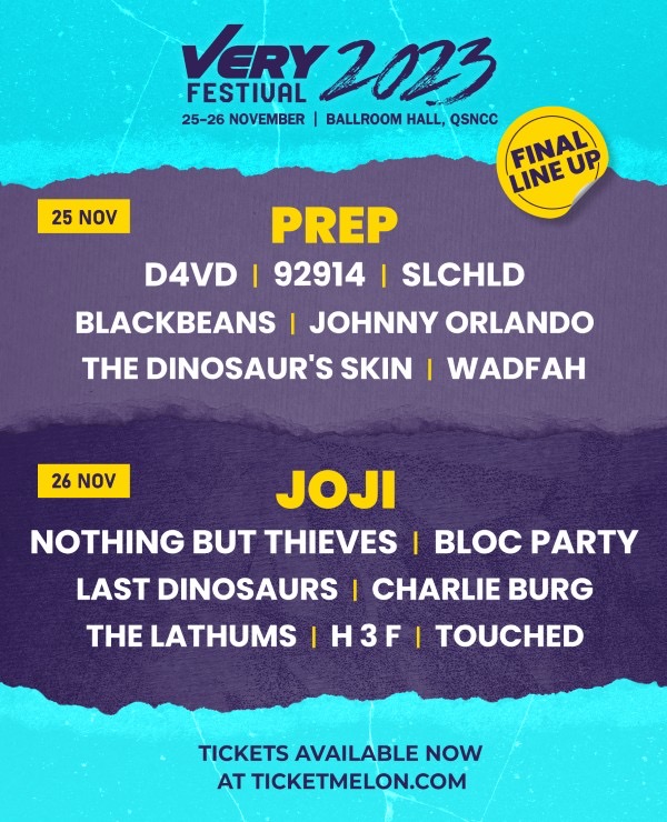 Very Festival 2023 จะจัดขึ้นในวันที่ 25-26 พฤศจิกายนนี้ ณ BALLROOM HALL, QSNCC (ศูนย์การประชุมแห่งชาติสิริกิติ์)