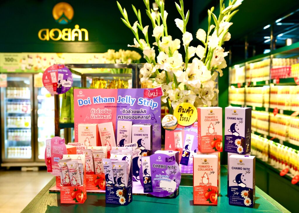 บริษัท ดอยคำผลิตภัณฑ์อาหาร จำกัด ผู้นำผลิตภัณฑ์เครื่องดื่มน้ำมะเขือเทศที่ครองใจผู้บริโภคมาอย่างยาวนาน เปิดตัวไลน์ผลิตภัณฑ์ใหม่ ดอยคำ เจลลี่ สตริป (Doikham Jelly Strip) ผลิตภัณฑ์เสริมอาหาร หนึ่งในความภาคภูมิใจ     ของดอยคำ ในการเพิ่มคุณค่าและมูลค่าให้กับผลิตผลจากเกษตรกรไทย ด้วยนวัตกรรมใหม่ของวงการผลิตภัณฑ์เสริมอาหารที่ผสานสารสกัดจากผลไม้ และสารสำคัญอื่นๆ มากถึง 12 ชนิด ในรูปแบบเจลลี่ ทานง่าย สะดวก ได้สุขภาพดี และมีคุณภาพ เจาะกลุ่มคนรุ่นใหม่ ที่มีไลฟ์สไตล์หลากหลายและผู้ใช้ชีวิตแบบเต็มที่ จนกระทั่งไม่มีเวลาดูแลตัวเองและมีปัญหาสุขภาพที่อยากหันมาใส่ใจเรื่องสุขภาพ ภายใต้คอนเซ็ปต์ Doikham The New Gen