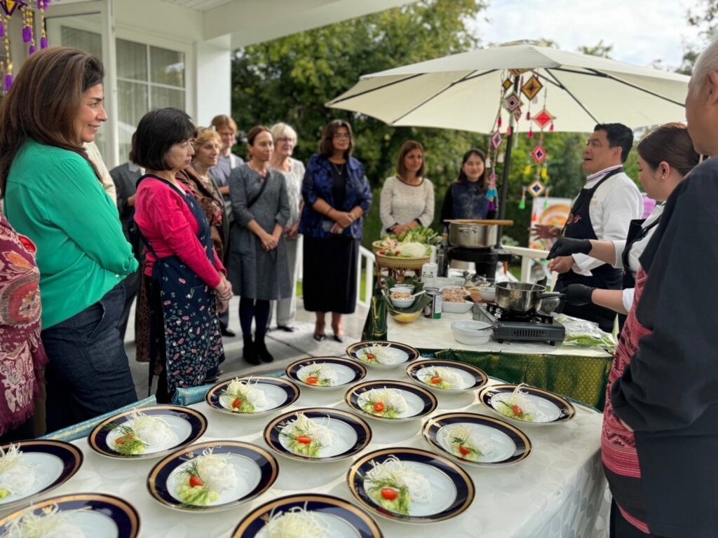 เมื่อวันที่ 22 และ 24 กันยายน ที่ผ่านมา สถานเอกอัครราชทูต ณ กรุงโคเปนเฮเกน จัดงาน Taste of Thailand ณ ทำเนียบเอกอัครราชทูต โดยได้เชิญ เชฟชุมพล แจ้งไพร ประธานอนุกรรมการ Soft Power สาขาอาหาร เจ้าของรางวัลมิชลิน 2 ดาว 5 ปีซ้อน ทำอาหารไทย 5 ภาค เสิร์ฟให้แก่ผู้เข้าร่วมงาน ได้แก่ ข้าวซอยเนื้อจากภาคเหนือ แกงเขียวหวานจากภาคกลาง ผัดหมี่โคราชและส้มตำไก่ย่างจากภาคอีสาน ขนมจีนน้ำยาปูจากภาคใต้ เส้นจันทน์ปูจากภาคตะวันออก ข้าวเหนียวมะม่วง ขนมหม้อแกง ขนมชั้น ขนมปังหน้ากุ้ง ข้าวตังหน้าตั้ง พร้อมสาธิตการประกอบอาหารไทยเมนูลาบคั่ว