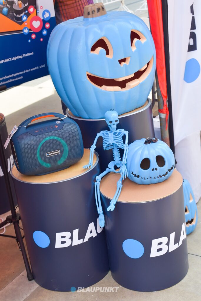 BLAUPUNKT แบรนด์นวัตกรรมระดับโลก ได้นำเทคโนโลยีล้ำสมัยและเสียงที่ชัดเจนทรงพลัง มาถล่มสยามจนกลายเป็นจุดหมายที่น่าตื่นตาตื่นใจของค่ำคืนฮาโลวีนตลอด 7 วัน  โดยมีไฮไลท์เป็นลำโพงบลูทูธรุ่นใหม่ BLAUPUNKT WIRELESS BLUETOOTH SPEAKER CLASSIC SERIES ที่ได้รับการออกแบบมาเพื่อความสะใจของทุกจังหวะเสียงและการแสดงอันทรงพลัง ด้วยเสียงแบบ HI-FI Sound Quality เพื่อตอกย้ำตำแหน่งผู้นำตลาดเครื่องเสียงที่เน้นคุณภาพระดับโลกและเน้นการเชื่อมต่อไร้สายที่สะดวกสบาย ลำโพง BLAUPUNKT นอกจากจะให้พลังเสียงที่สะใจแล้ว ยังออกแบบมาเพื่อตอบสนองการใช้งานหลากหลาย เพื่อให้ทุกคนสามารถเติมเต็มช่วงเวลาของตนเองได้อย่างลงตัวกับไลฟ์สไตล์ที่ต้องการ นอกจากนี้ ภายในงานยังมีการตกแต่งแสงสีเข้ากับเทศกาล Halloween ทำให้บรรยากาศของงานดูน่าตื่นเต้นยิ่งขึ้น แบบไม่มีใครเคยทำมาก่อน จนกลายเป็นลำโพงสุดไวรัลสำหรับชาวโซเชียล รู้ยัง ใครๆก็ใช้บลาวฟุ้งค์ ใครใช้ก็ชอบ คุ้มค่าคุ้มราคา