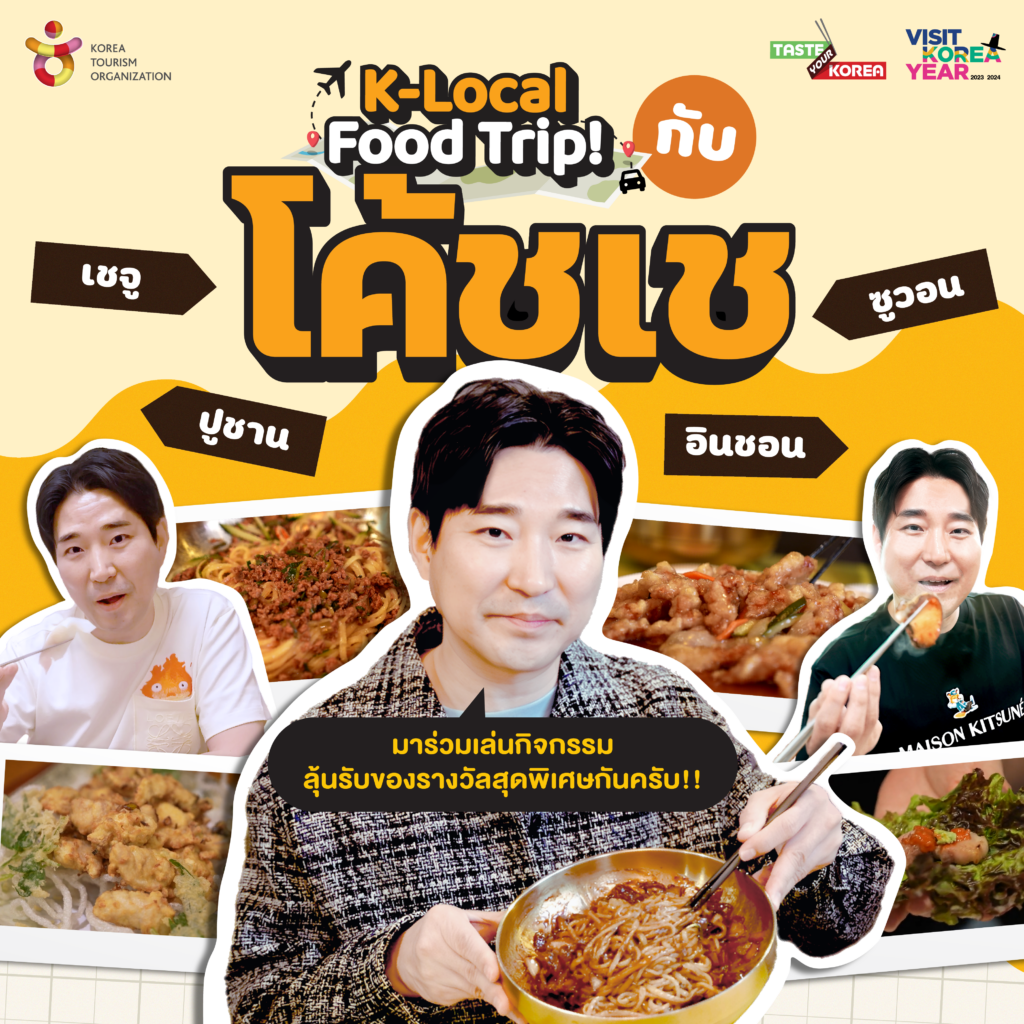 แคมเปญสุดพิเศษ “K-Local Food Trip: สัมผัสรสชาติท้องถิ่นของเกาหลีใต้” จัดขึ้นโดยองค์การส่งเสริมการท่องเที่ยวเกาหลี (Korea Tourism Organization) เพื่อพาทุกคนไปสัมผัสและเรียนรู้เกี่ยวกับอาหารท้องถิ่นของเกาหลีใต้ ตั้งแต่ทะเลจนถึงภูเขา ฟาร์มจนถึงโต๊ะอาหาร โดยนำเสนอคอนเท้นต์ที่จะพาทุกคนตะลุยไปในเมืองต่างๆ ของเกาหลีและสำรวจอาหารที่มีเอกลักษณ์จากแต่ละเมือง พร้อมทั้งเรียนรู้เกี่ยวกับวัตถุดิบที่ใช้ในการทำอาหาร ที่สำคัญคือ ทริป K-Local Food Trip: สัมผัสรสชาติท้องถิ่นของเกาหลีใต้ นี้ให้คุณได้สัมผัสประสบการณ์การเดินทางผ่านการกินในแบบที่ไม่เคยมีมาก่อน