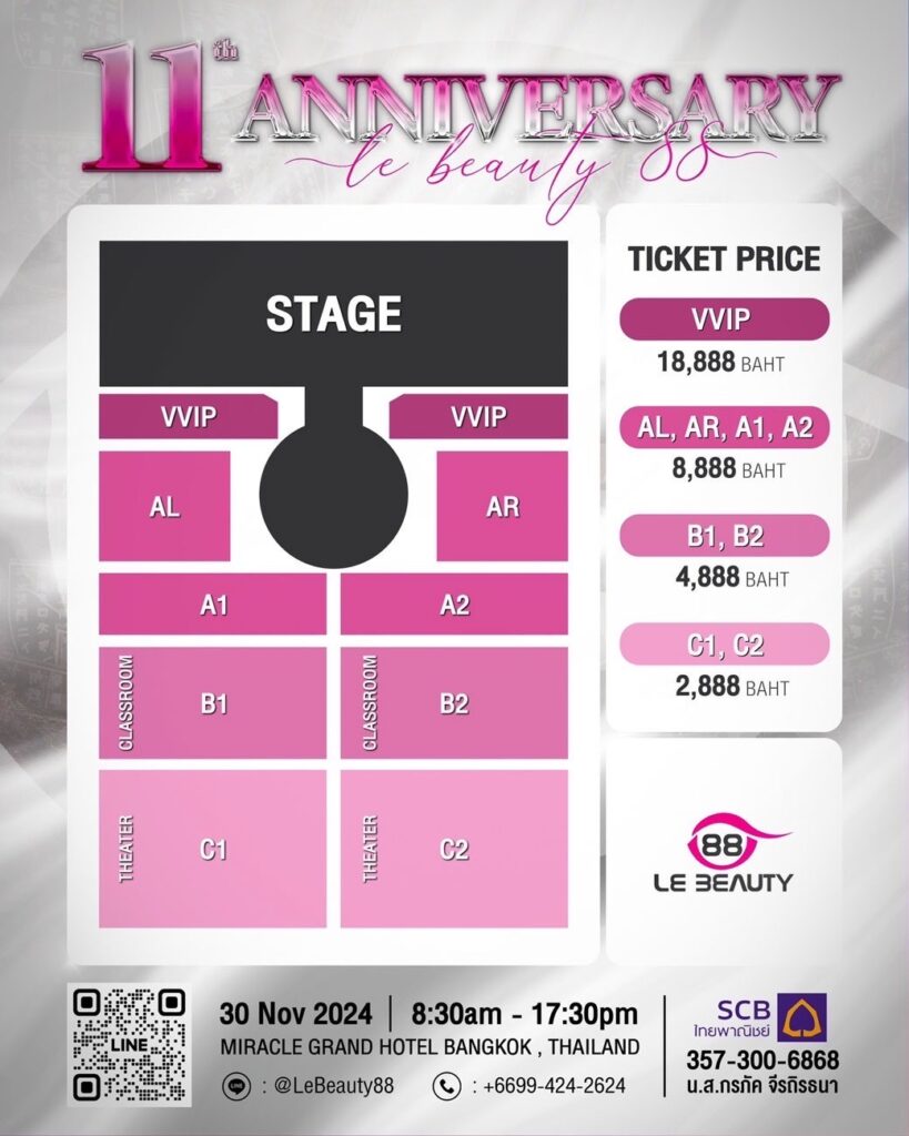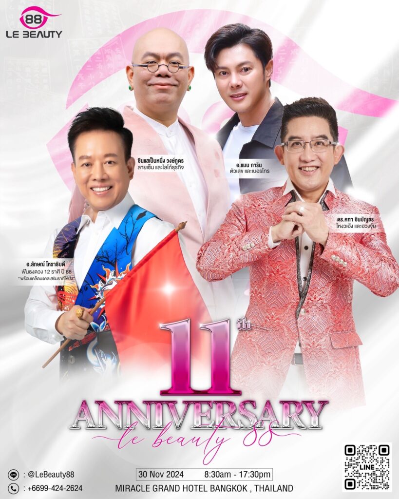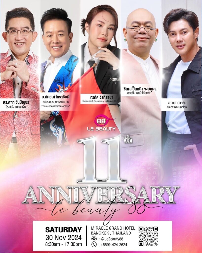ได้รับการตอบรับอย่างล้นหลามมาอย่างต่อเนื่องสำหรับสถาบัน LeBeauty88 ผู้นำด้านความงาม และศาสตร์โหงวเฮ้ง โดยปีนี้ คุณกรภัค จีรถิรธนา ผู้บริหาร จากสถาบัน LeBeauty88 ได้จัดงาน 11th Anniversary of Lebeauty88 ส่งท้ายปีมังกร รวบรวมศาสตร์ความรู้ จากซินแสชั้นแนวหน้าของเมืองไทย มาให้ความรู้เฉพาะด้านแก่ประชาชนทั่วไปและผู้ประกอบการด้านความงาม เพื่อเป็นแนวทางในการใช้ชีวิตใน ปี 2568 พร้อมแขกรับเชิญพิเศษ ที่จะมาบอกเคล็ดลับ ความปัง ความดัง ความรวย โดยภายในงานผู้เชี่ยวชาญชื่อดังในศาสตร์ต่างๆได้เตรียมเคล็ดลับความปังมามอบความรู้ให้แก่ผู้เข้าร่วมงานอย่างมากมาย อาทิ