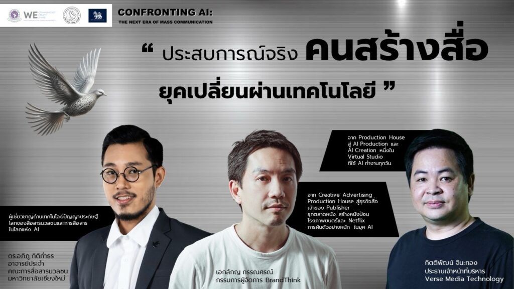 นายชลวิทย์ สุขอุดม นายกสมาคมศิษย์เก่าสื่อสารมวลชน มหาวิทยาลัยเชียงใหม่ กล่าวว่า ปัจจุบันเทคโนโลยีปัญญาประดิษฐ์ (Artificial Intelligence หรือ A)I เข้ามามีบทบาทในชีวิตประจำวันของเรามากขึ้น โดยเฉพาะในแวดวงสื่อสารมวลชน จึงเป็นความท้าทายของคนทำสื่อในแขนงต่างๆ ว่าจะปรับตัว และปรับ กระบวนการทำงานในโลกยุคใหม่นี้ได้อย่างไร ผลกระทบและผลที่ตามมาจาก ความฉลาดล้ำยุคของ AI ที่เพิ่มขึ้นทุกวัน มีอะไรบ้าง คนจะตกงานหรือเปล่า ภาคการศึกษาจะปรับหลักสูตรอย่างไร ฯลฯสมาคมศิษย์เก่าสื่อสารมวลชน มช.ซึ่งตระหนักถึงความท้าทายจากการเปลี่ยนแปลงที่เกิดขึ้น จึงจับมือคณะการสื่อสารมวลชน มหาวิทยาลัยเชียงใหม่ จัดเสวนา หัวข้อ “CONFRONTING AI : THE NEXT ERA OF MASS COMMUNICATION สื่อยุคเทคโนโลยีใหม่ ความท้าทายแห่งอนาคตสื่อสารมวลชน” โดยกำหนดจัดเสวนาขึ้นในวันพฤหัสบดีที่ 21 พฤศจิกายน 2567 เวลา 13.00 – 16.30 น ผ่านช่องทางทั้งออนไซต์และออนไลน์ คือ Live สดให้ชมทั่วประเทศทางเพจ: คณะการสื่อสารมวลชน มหาวิทยาลัยเชียงใหม่