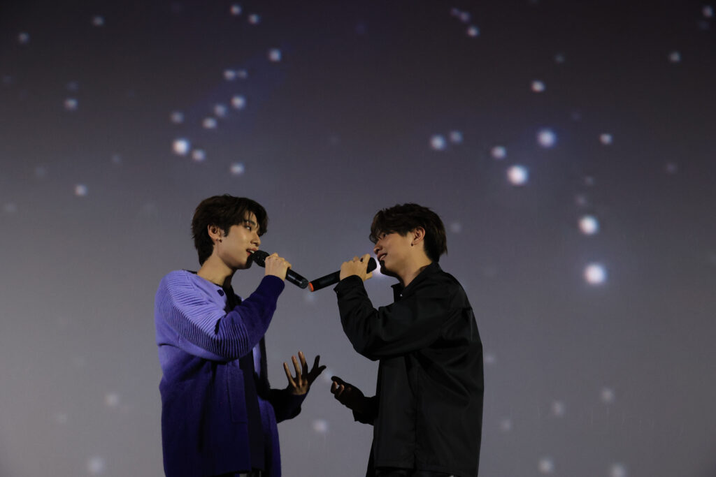สำหรับบรรยากาศภายในงาน มีเหล่าแฟนคลับทั้งชาวไทย กัมพูชา และต่างชาติ กว่า 500 ชีวิต ที่พร้อมใจมารอ กันตั้งแต่เช้า เมื่อถึงเวลาเริ่มงาน ทันทีที่ จุง-ดัง ปรากฏตัว ด้วยการร้องเพลง “แล้วแต่ดาว” กล่าวต้อนรับ พร้อมบอกรักแฟนๆ เป็นภาษากัมพูชา ก็ได้รับเรียกกรี๊ดสนั่นอย่างต่อเนื่อง ทำเอา 2 หนุ่มยิ้มแก้มปริกับการต้อนรับสุดอบอุ่น หลังจากนั้นเป็นการพูดคุย ถึงความรู้สึกของงานแฟนมีตติ้งครั้งแรกนี้ โดยระหว่างการพูดคุย ทั้งจุงและดัง ได้หยอดโมเม้นต์ฟินๆให้แฟนๆจิกหมอนปลื้มปริ่ม กันถ้วนหน้า หลังจากนั้นทั้งคู่ก็เอาใจแฟนคลับโดยการสุ่มเลือกคำถามจากแฟนๆ ที่มีการให้เขียนคำถามที่อยากถามจุง-ดัง ไว้ตอนลงทะเบียน ซึ่งเป็นการตอบคำถามแบบไม่มีกั๊ก ทำเอาแฟนคลับกรี๊ดแบบไม่พักเลยทีเดียว ก่อนที่จะถึงช่วงต่อไป ทั้งจุงและดัง ก็ขอคั่นเวลาด้วยการร้องเพลง “กอดที” หลังจากนั้นก็ถึงเวลาเกมส์สนุกๆ สุดจิ้นที่ทำเอาแฟนๆฟินกันจนหน้าแดง อีกทั้งยังมีการสุ่มแฟนคลับผู้โชคดีให้ขึ้นมาร่วมเล่นเกมส์กับทั้งคู่อีกด้วย ทำเอาแฟนคลับที่เหลือตาร้อนไปตามๆกัน นอกจากนี้ จุง-ดัง ยังโชว์เสต็ป “กัมพูชา Battle” เต้นแบทเทิลเพลงกัมพูชากับแฟนคลับ สร้างรอยยิ้ม เสียงหัวเราะพร้อมเรียกเสียงเชียร์ได้สนั่น ฮอลล์เลยทีเดียว และเมื่อเวลาเดินทางมาถึงช่วงสุดท้าย ทั้งจุงและดัง ก็ได้รับเซอร์ไพร์สจากโปรเจ็คที่เหล่าแฟนคลับตั้งใจมอบให้ ทำเอาทั้งคู่ถึงขึ้นซึ้งจนกลั้นน้ำตาไว้ไม่อยู่ จุงและดังกล่าวขอบคุณความรักของแฟนๆทุกคนที่ทำให้เกิดงานในครั้งนี้ขึ้นจากใจ พร้อมให้คำสัญญาว่าจะสร้างผลงานดีๆออกมาเพื่อทุกคนต่อไป หลังจากนั้นเป็นการถ่ายรูปร่วมกัน และปิดท้ายงานนี้ด้วย ของขวัญชิ้นสุดท้ายที่ทั้งคู่เตรียมมามอบให้แฟนคลับโดยเฉพาะกับเพลง “ท้องฟ้ากับแสงดาว” ที่แฟนคลับทุกคนพร้อมใจกัน ร้องตามจนเสียงก้องไปทั้งฮอล์ เรียกได้ว่าเป็นงานแฟนมีตติ้งคู่ครั้งแรกของ จุงและดัง ที่สร้างความประทับใจในทุกๆโมเม้นต์ ครบทุกรส แห่งความฟิน ทั้งรอยยิ้ม เสียงหัวเราะ จนถึงหลั่งน้ำตา ปลื้มปริ่มหัวใจกันถ้วนหน้าทั้งแฟนคลับและศิลปินเลยทีเดียว
