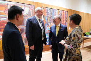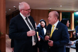 นายพิชัย นริพทะพันธุ์ รัฐมนตรีว่าการกระทรวงพาณิชย์ ได้รับเชิญจากสถานเอกอัครราชทูตเครือรัฐออสเตรเลีย กล่าวเปิดงานเลี้ยงรับรองหอการค้าออสเตรเลีย-ไทยหรือ AustCham และผู้นำองค์กรของไทย ณ ทำเนียบเอกอัครราชทูตเครือรัฐออสเตรเลียประจำประเทศไทย ช่วงค่ำวานนี้ (23 ก.ย.67) โดยมี นายทิม แอร์ ผู้ช่วยรัฐมนตรีด้านการค้าเครือรัฐออสเตรเลีย ดร.แอนเจลา แม็กดอนัลด์ เอกอัครราชทูตเครือรัฐออสเตรเลียประจำประเทศไทย นายวุฒิไกร ลีวีระพันธุ์ ปลัดกระทรวงพาณิชย์ นางสาวโชติมา เอี่ยมสวัสดิกุล อธิบดีกรมเจรจาการค้าระหว่างประเทศ และนักธุรกิจออสเตรเลีย ร่วมด้วย พร้อมแสดงความพร้อมที่ทำงานร่วมกับภาคเอกชนออสเตรเลียและไทย เพื่ออำนวยความสะดวกให้กับภาคธุรกิจ และขับเคลื่อนการค้าการลงทุนร่วมกันต่อไป