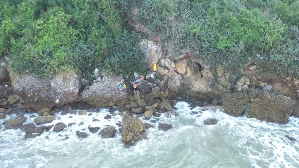 ภาพมุมสูงจากอากาศยานไร้คนขับ(โดรน)สามารถบันทึกเหตุการณ์ 2 นักท่องเที่ยวชาวต่างชาติเล่นกีฬาไคท์เซิร์ฟติดอยู่บนหัวเขากะโหลกฝั่งในทะเล ขณะที่คลื่นน้ำทะเลพัดถาโถมเข้าหาฝั่งนักท่องเที่ยวได้โบกมือขอความช่วยเหลือหลังจากที่เจ้าหน้าที่วนอุทยานท้าวโกษา(เขากะโหลก) อ.ปราณบุรี ต.ปากน้ำปราณ อ.ปราณบุรี จ.ประจวบคีรีขันธ์ และอาสาสมัครพิทักษ์ทะเลและชายฝั่ง ได้รับแจ้งจากครอบครัวชาวต่างชาติว่าแฟน และเพื่อนได้ออกไปเล่นไคท์เซิร์ฟในทะเลบริเวณหน้าหาดวนอุทยาน ตั้งแต่เวลา 10.00 น.แล้วจู่ๆก็หาย ไป