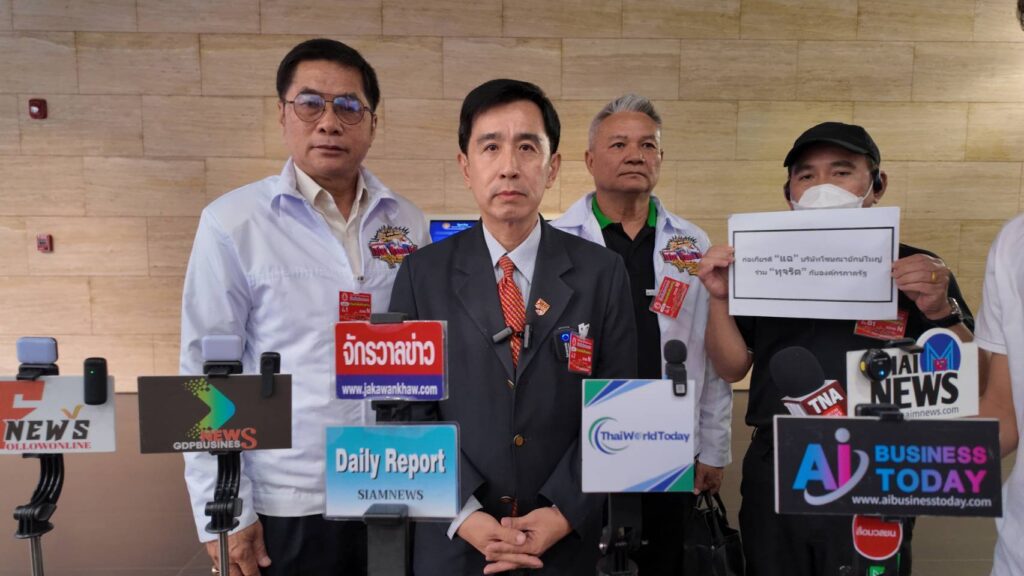 “โปรโมเตอร์มวยโลกก่อเกียรติ” ร้องทุกข์บริษัทสื่อยักษ์ใหญ่อักษรย่อ”พ” ปลอมแปลงเอกสารสำคัญในตลาดหลักทรัพย์ และร่วมหน่วยงานภาครัฐ “ทุจริต”สร้างความเสียหาย 5,000 ล้านบาทต่อประธานคณะกรรมาธิการป้องกันปราบปรามการฟอกเงินและยาเสพติด ที่อาคารรัฐสภา