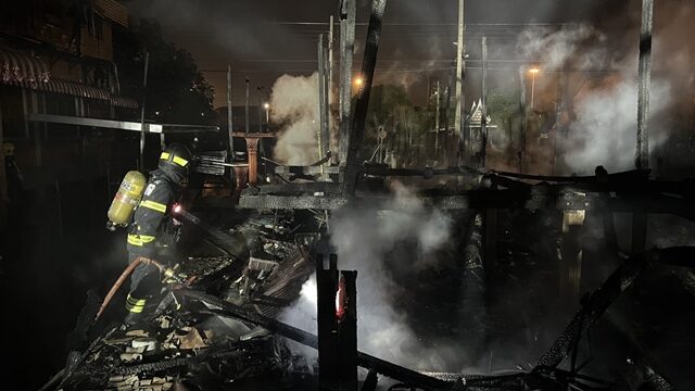 เมื่อเวลา 00.30 น. วันที่ 1 ม.ค.2568ตำรวจ สภ.บางศรีเมือง รับแจ้งเหตุเพลิงไหม้บ้านต.บางกร่าง อ.เมือง จ.นนทบุรีที่เกิดเหตุเป็นบ้านไม้ริมคลองอ้อมปลูกติดกัน 4 หลัง ไฟได้ลุกไหม้อย่างรวดเร็ว รถดับเพลิงไม่สามารถเข้าถึงบ้านเกิดเหตุได้ ต้องแบกเครื่องสูบน้ำเข้าไปยังที่เกิดเหตุแล้วสูบน้ำจากคลองฉีดเพื่อดับไฟอยู่นานกว่า 1 ชั่วโมง แต่ไฟได้ลุกไหม้อย่างรวดเร็ว ทำให้บ้านที่ปลูกติดกันทั้ง 4 หลังถูกไหม้จนหมด