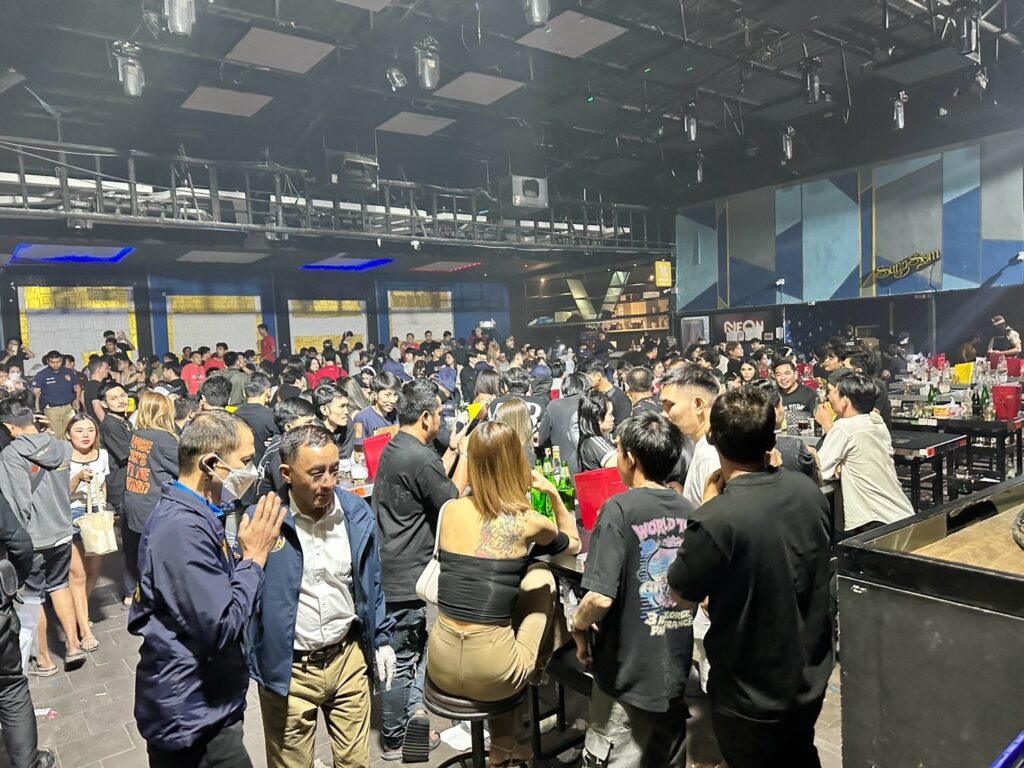 กระทั่งเวลา 03.00 น. วันที่ 23 มี.ค. 2568 ได้เปิดปฏิบัติการจู่โจมสถานบันเทิงละเมิดกฎหมายทันที เมื่อชุดจับกุมเข้าไปถึงภายในผับ พบเป็นห้องทึบ เปิดเพลงแนวปาร์ตี้ มีแสง สี เสียง เต็มระบบ โดยจะมีดีเจผลัดเปลี่ยนกันให้บริการตลอดคืน พบนักเที่ยวจำนวน 212 คน กำลังมั่วสุมดื่มกินเครื่องดื่มแอลกอฮอล์ เต้นตามจังหวะเสียงดนตรีอย่างเมามัน ทั้งยังสูบบุหรี่พ่นควันคละคลุ้ง พนักงานฝ่ายปกครองจึงสั่งให้ปิดเพลงและเปิดไฟให้แสงสว่าง ภายในผับได้เกิดความโกลาหล