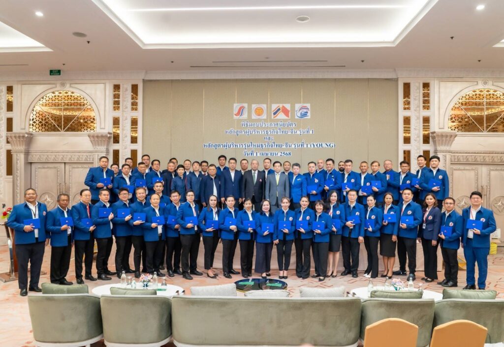 เมื่อวันที่ 1 เมษายน 2568 เวลา 17.30 น.สมาคมผู้สื่อข่าวไทย-จีนได้จัดพิธีมอบประกาศนียบัตรและเข็มความสัมพันธ์ไทย-จีน ให้แก่ผู้สำเร็จการศึกษาหลักสูตรผู้บริหารธุรกิจไทย-จีน รุ่นที่ 1 และหลักสูตรผู้บริหารรุ่นใหม่ธุรกิจไทย-จีน (Young) รุ่นที่ 1 ณ ห้องบอลรูม 1 ชั้น 3 โรงแรมดิ เอมเมอรัลด์ ถนนรัชดาภิเษก กรุงเทพฯ โดยมี ฯพณฯ หาน จื้อเฉียง เอกอัครราชทูตสาธารณรัฐประชาชนจีนประจำประเทศไทย เป็นประธานในพิธีและมอบประกาศนียบัตรแก่ผู้สำเร็จการศึกษา โดยมี ดร.กำพล มหานุกูล นายกสมาคมผู้สื่อข่าวไทย-จีน ตลอดจนคณะกรรมการ ผู้บริหาร และที่ปรึกษาหลักสูตร และผู้สำเร็จการศึกษาให้การต้อนรับ