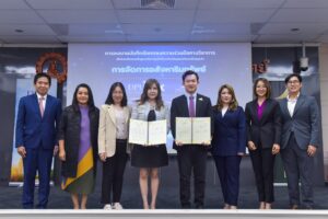 ผศ.ดร.พัทธนันท์ เพชรเชิดชู รองอธิการบดีสายงานวิชาการ มหาวิทยาลัยธุรกิจบัณฑิตย์   ร่วมลงนามบันทึกข้อตกลงความร่วมมือทางวิชาการกับ บริษัท วี บียอนด์ ดีเวลอปเม้นท์ จำกัด (มหาชน) โดย ดร.วรเดช รุกขพันธุ์ ประธานเจ้าหน้าที่บริหาร เพื่อพัฒนาหลักสูตรบริหารธุรกิจระดับปริญญาตรีและปริญญาโท ด้านนวัตกรรมการจัดการอสังหาริมทรัพย์ โดยมุ่งสร้างนักศึกษาที่มีความรู้รอบด้านในการบริหารอสังหาฯ สมัยใหม่ เข้าใจเทคโนโลยีและนวัตกรรมใหม่ๆด้านการจัดการธุรกิจอสังหาริมทรัพย์ สามารถปรับตัวตามการเปลี่ยนแปลงของอุตสาหกรรม และพร้อมเป็นผู้ประกอบการที่มีจริยธรรม รับผิดชอบต่อสังคม เศรษฐกิจ วัฒนธรรม และสิ่งแวดล้อม เพื่อการพัฒนาอสังหาริมทรัพย์อย่างยั่งยืน ทั้งนี้ได้รับเกียรติจาก ดร.สุรวี ศุนาลัย ผู้อำนวยการฝ่ายคุณภาพการศึกษา DPU และ ดร.นภาพร จุลสุคนธ์ กรรมการผู้จัดการ บริษัท วี บียอนด์ฯ ร่วมเป็นสักขีพยาน